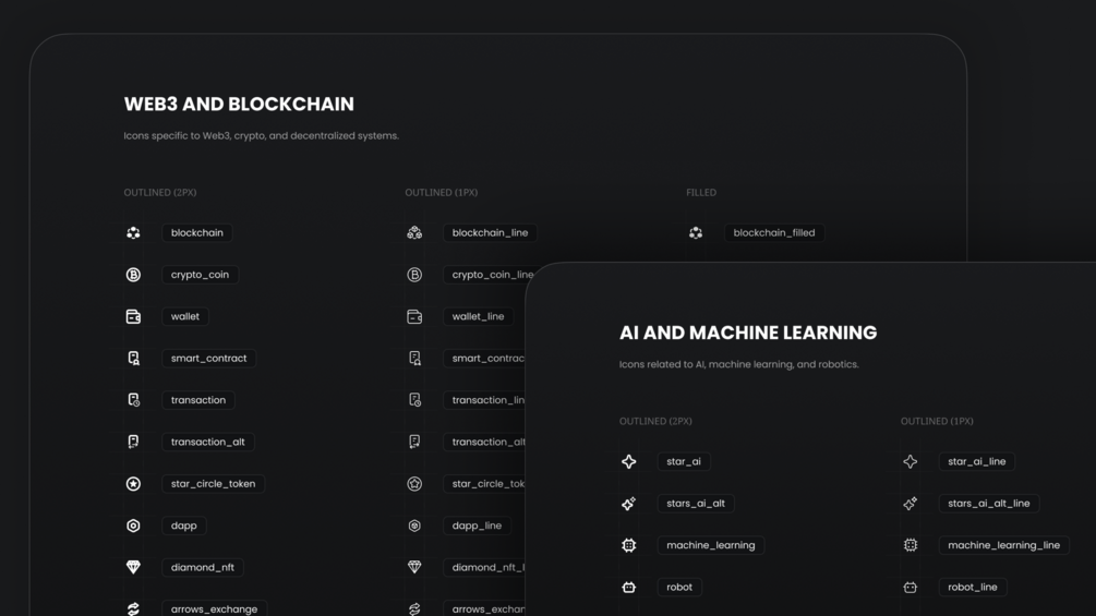 Specialized icons for Web3 and AI platforms.