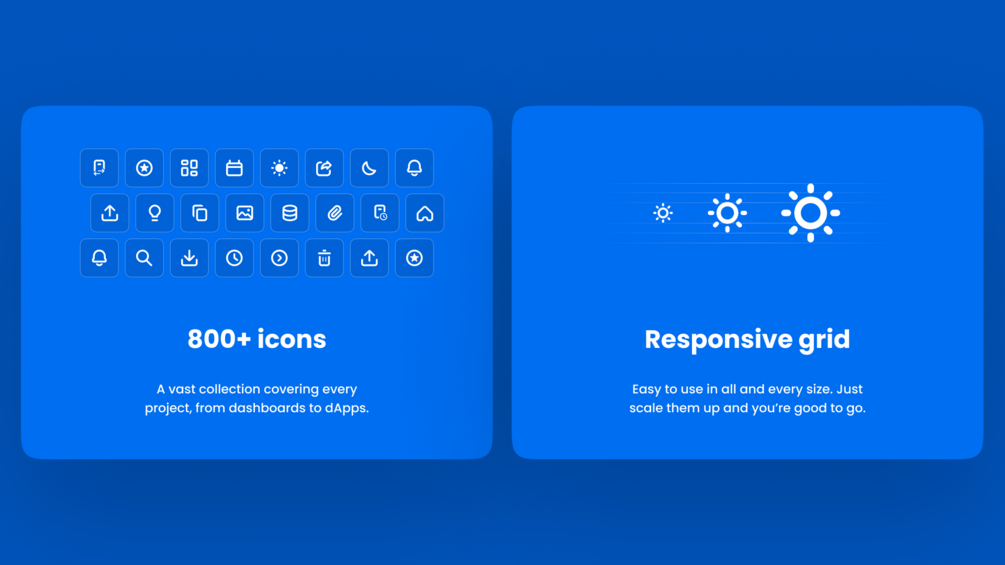 A vast collection of 800+ icons covering every project, from dashboards to dApps.